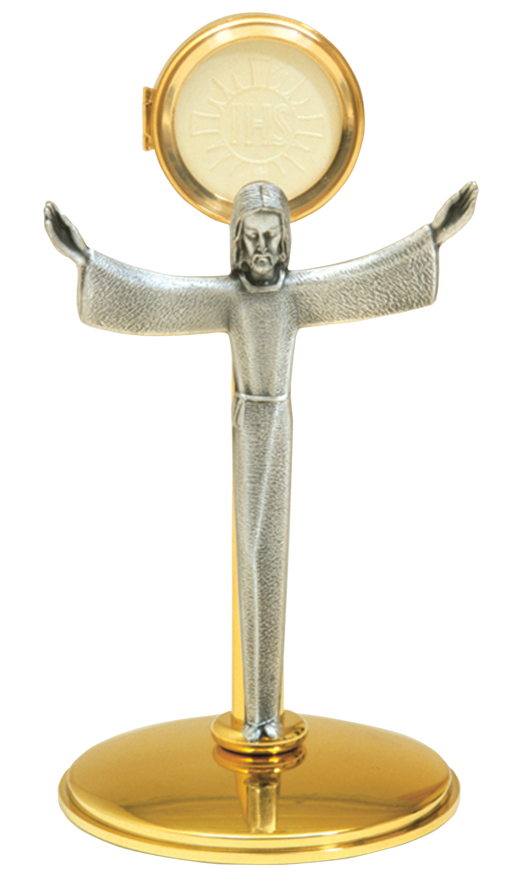 Design: Features an oxidized Risen Christ figure to symbolize Christ’s resurrection and His divine presence in the Eucharist.