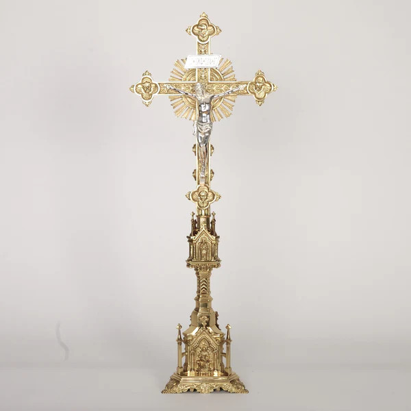 Traditional French Gothic Style Altar Cross – ornate and reverent design